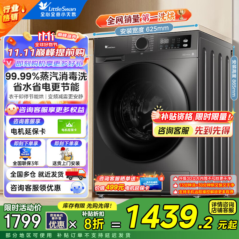 小天鹅(LittleSwan)滚筒洗衣机全自动 10公斤大容量 除螨除菌羽绒服洗 BLDC变频电机 高温煮洗 深层除菌净螨 【洗烘一体】1.1洗净比+暖烘空气洗+蒸汽消毒