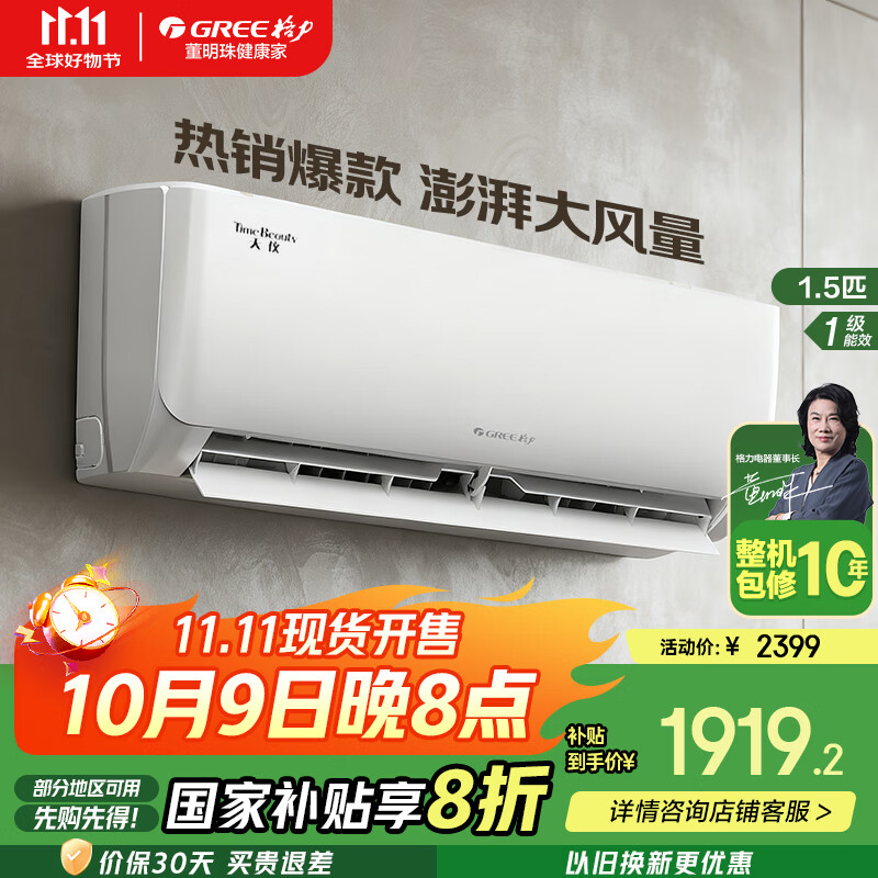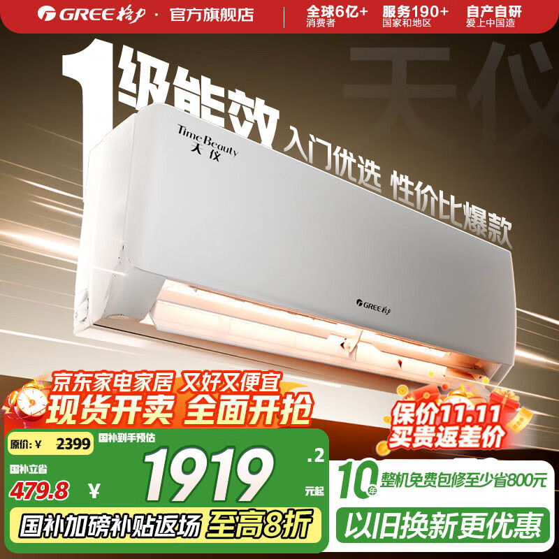 格力(GREE)空调 大1匹/1.5匹 天仪 新一级能效 变频冷暖自清洁 卧室空调挂机 家电国家补贴 以旧换新 1.5匹 一级能效 天仪挂机