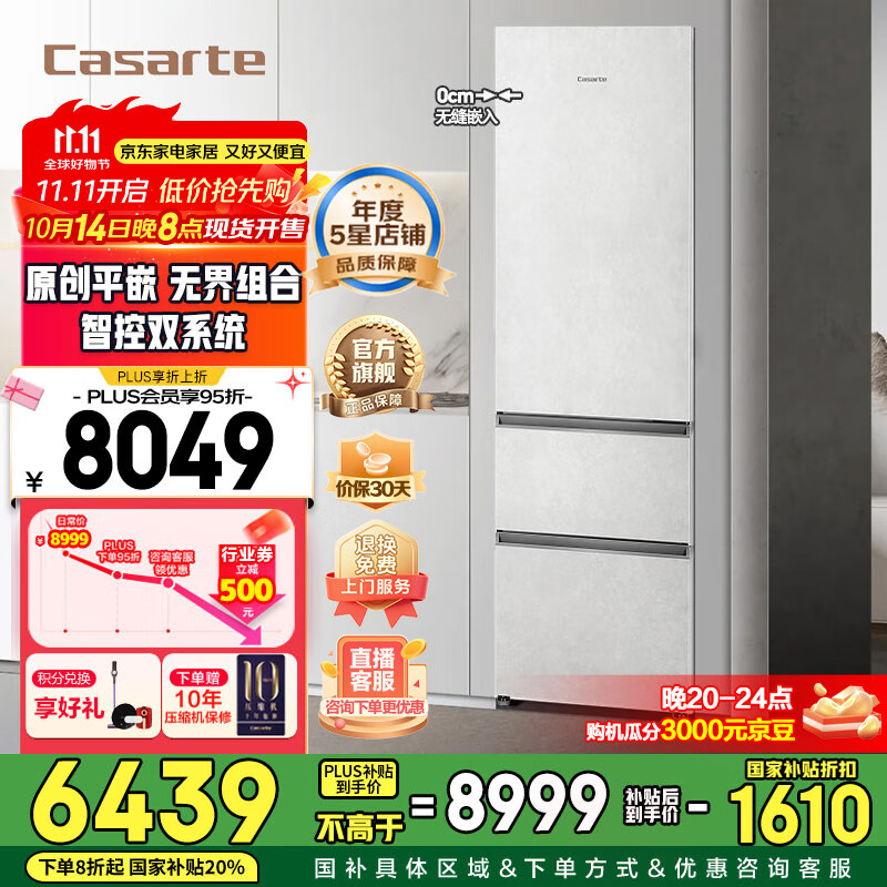 卡萨帝(Casarte)【致境】400升原石原创平嵌三开门超薄嵌入式双系统小型国家补贴20%冰箱 双系统 BCD-400WLCI3M4GDU1