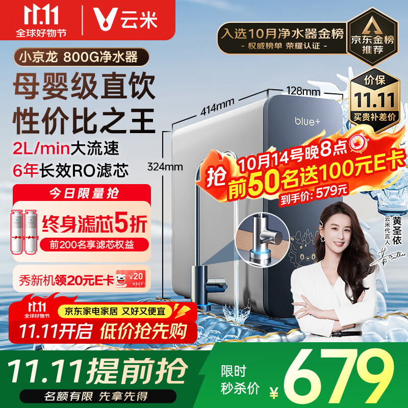 云米(VIOMI)净水器家用小京龙800G纯水ro反渗透厨房厨下式0阻垢剂母婴直饮自来水过滤器净水机净饮机 国家补贴