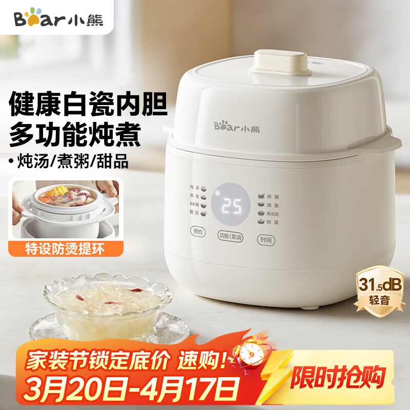 小熊(Bear)电炖盅 电炖锅 炖汤盅电炖锅 煮粥锅 燕窝炖盅 隔水炖锅1-2人煲汤锅1L炖汤锅DDZ-E10N1