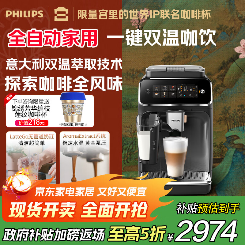 飞利浦(PHILIPS)【政府补贴】云朵咖啡机新3系EP3341/82家用/办公室全自动意式浓缩低温冷萃全自动咖啡机 送礼