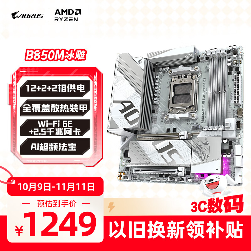技嘉(GIGABYTE)冰雕B850M AORUS ELITE WIFI6E ICE主板DDR5支持AMD CPU AM5 9700X 9950X 9900X 9600X