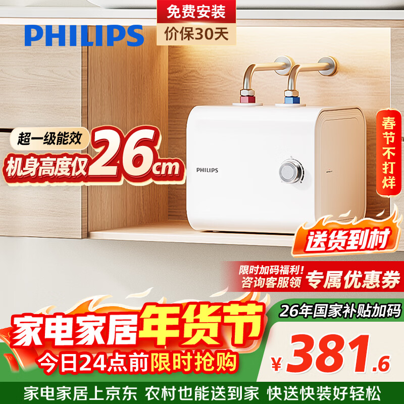 飞利浦(PHILIPS)7升小厨宝电热水器一级能效节能 2200W速热家用厨房热水宝台下 国家补贴15% 小尺寸AWH1013/93