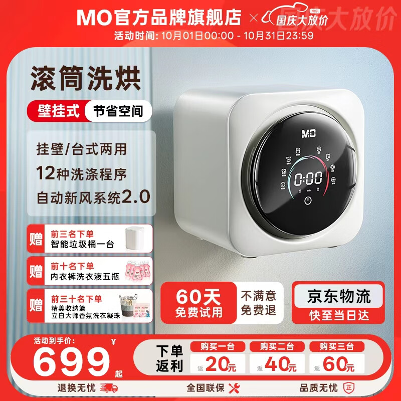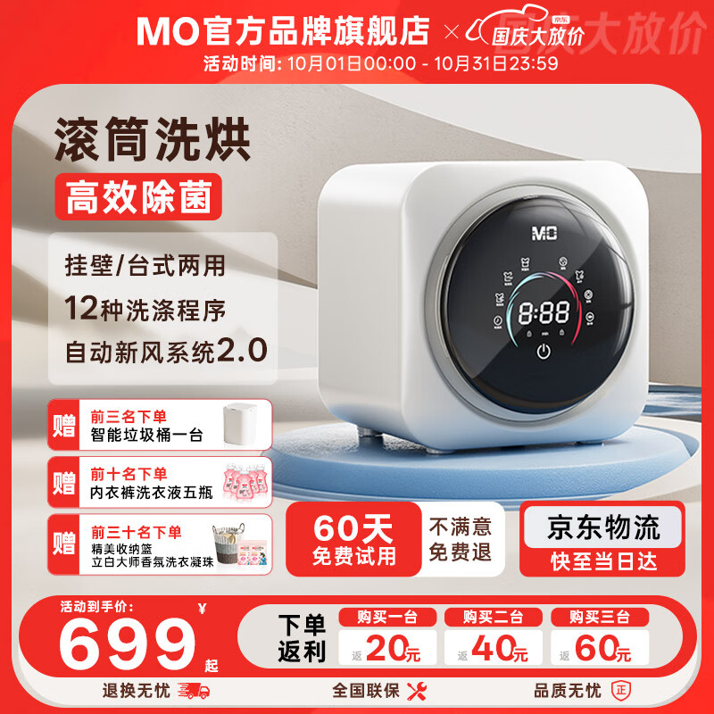 MO迷你洗衣机全自动迷你内衣裤洗衣机小型内裤袜子洗衣机新型滚筒除菌家用宿舍洗烘一体型新款洗衣机 壁挂【洗烘一体+高温除菌+多重降噪】