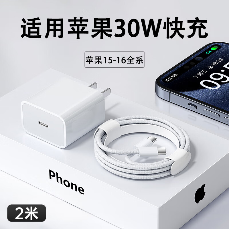 今典适用苹果30W/20W充电器线iPhone16Promax充电头15pro数据线14/13/12p插头x手机plus专用xr快充套装 30W充电器+2米双C编织线【15-16系】
