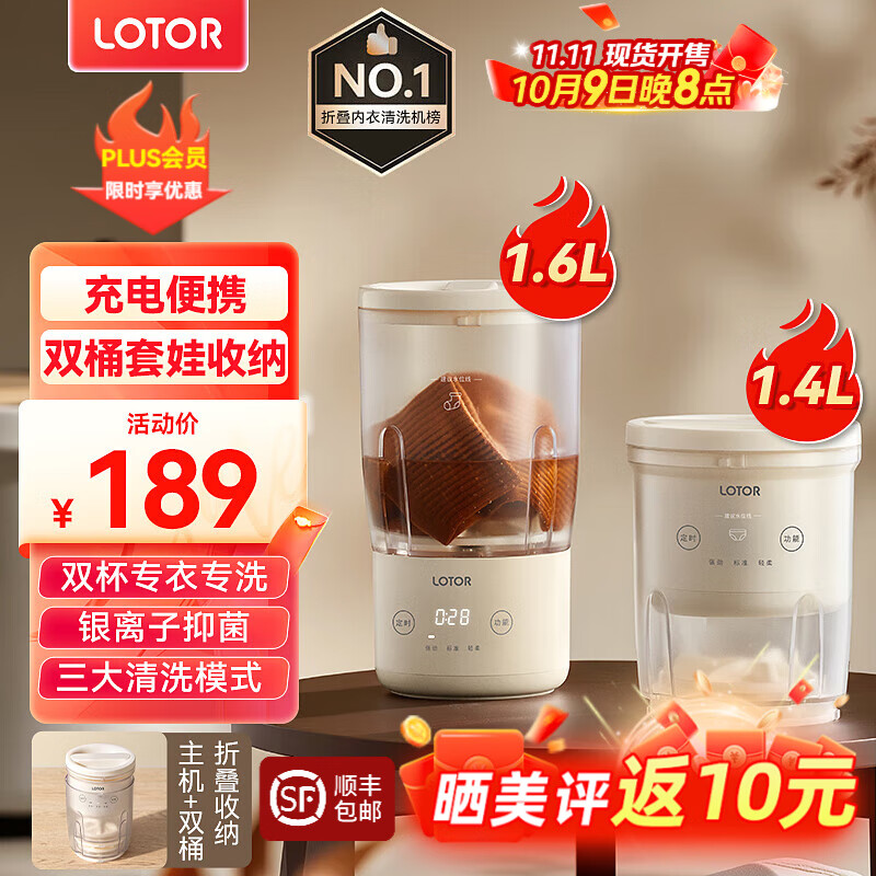LOTOR徕多内衣洗衣杯 迷你洗衣机小型折叠洗衣机内裤洗衣机半自动懒人洗衣机宿舍便携式清洗机洗袜子机 分桶不串染+无线便携【双桶】