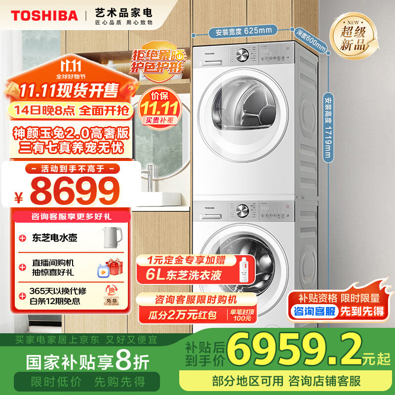 东芝(TOSHIBA)玉兔2.0高奢版纯平全嵌洗烘套装 10KG全自动滚筒洗衣机+变频热泵式烘干机 DG-10T183BW+DH-10T183BW