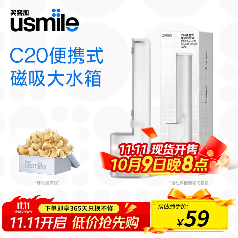 usmile笑容加冲牙器配件大水箱 替换喷嘴 家用磁吸便携C20配件大水箱180ml 冲牙器喷嘴配件 C20配件180ml大水箱 雪山白