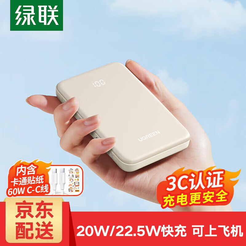 绿联充电宝20000毫安时 22.5W级快充兼容苹果PD20W可上飞机大容量移动电源适用iPhone17华为小米手机 22.5W快充【10000mAh】小巧便携款