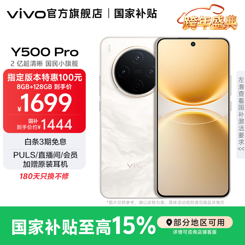 vivo Y500 Pro 2亿HP5旗舰级主摄 持久流畅OriginOS 6 十倍时长IP68+IP69防水 国家补贴 新品手机 祥云金 8GB+256GB 官方标配