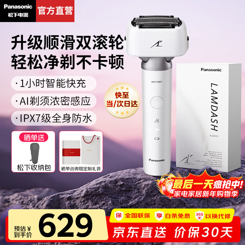 松下(Panasonic)小锤子3.0电动剃须刀刮胡往复式智能便携胡须刀水洗送男士生日元旦新年礼物高档LM36 抗菌升级小锤子3.0丨流光白 LM36