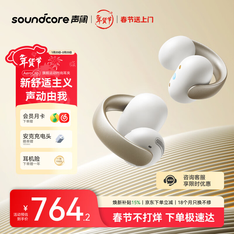 声阔安克【胡彦斌同款】AeroClip耳夹式蓝牙耳机无线开放式运动跑步耳机气传导耳机适用苹果华为小米白
