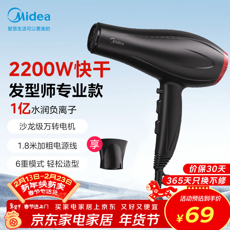 美的(Midea)1亿负离子护发电吹风 家用/发廊吹风机 2200W大功率快干不伤发吹风筒 FJ100黑 节日/生日礼物推荐