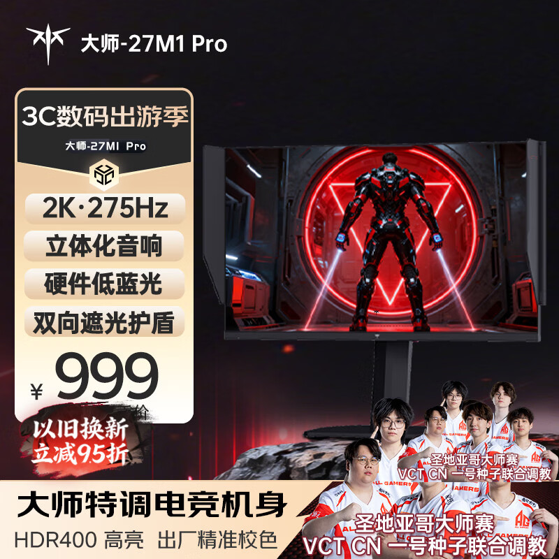 KTC 27英寸2K高清275Hz原生240Hz 音箱 HDR400 硬件护眼 升降旋转 三角洲游戏显示器 大师27M1 Pro
