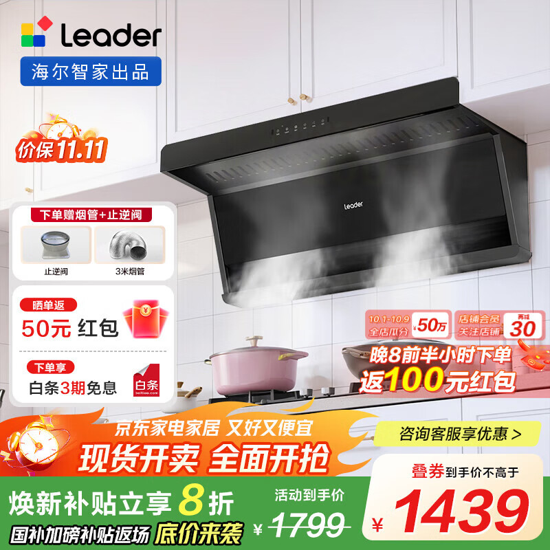 海尔(Haier)变频抽油烟机 家用顶侧双吸28风量1000pa 大吸力纤薄7字型 烟灶联动 热熔自清洗 挥手智控78Z3UD 【单烟机】28风量变频烟机