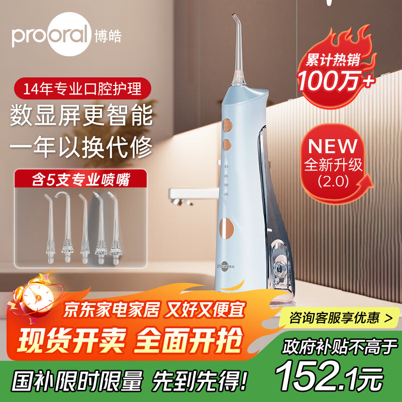 博皓(prooral)【正畸适用】冲牙器手持立式洗牙器声波微气泡水牙线5025Plus天空蓝【生日送礼】