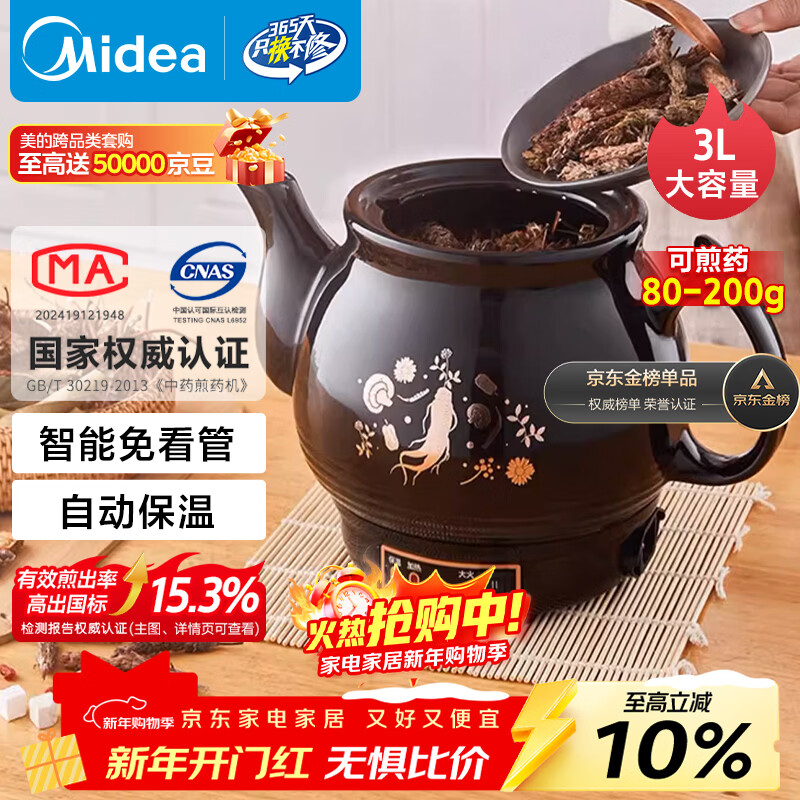 美的(Midea)煎药壶 中药壶中药锅中药罐智能一体全自动陶瓷炖药锅煲3L大容量养生壶熬药壶煎药电药壶DG30E103