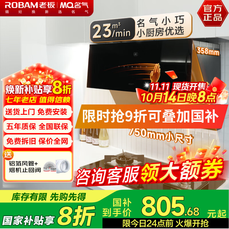 名气(MQ)老板【小巧A316】750mm小尺寸抽吸油烟机侧吸式23风量大吸力补贴20%家用小户型脱排油烟机烟灶套装 316单烟机-750mm