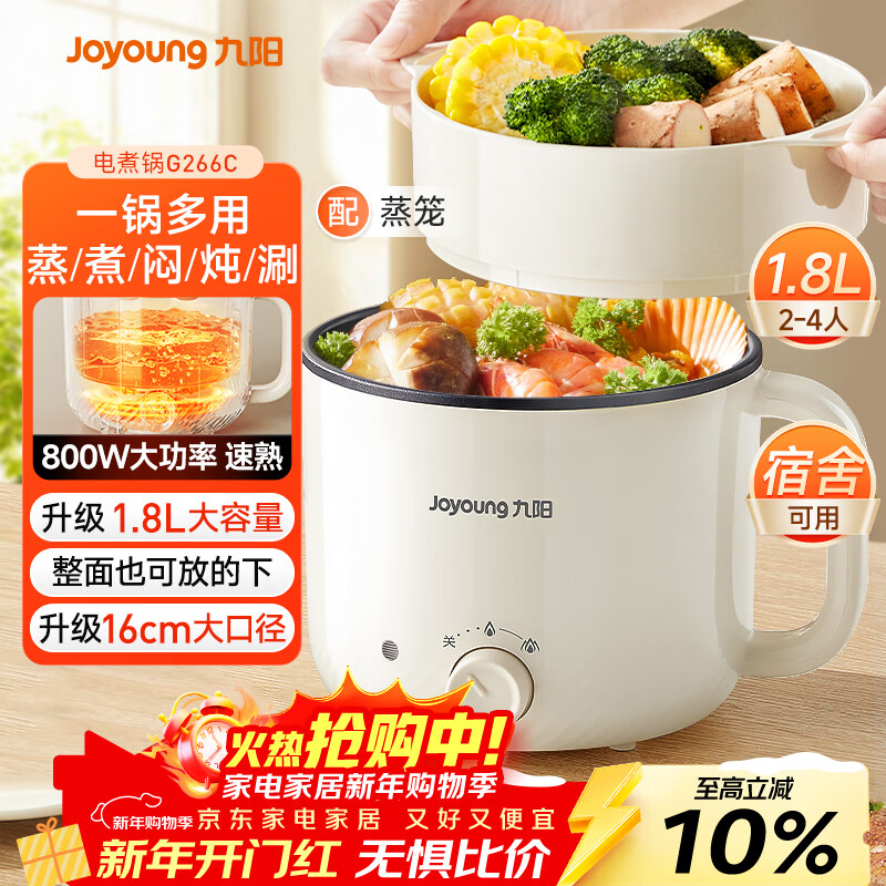 九阳(Joyoung)多功能锅电热锅小煮锅电蒸锅火锅锅学生宿舍电煮锅1-2人1.8L泡面电火锅HG18-G266C【蒸笼款】