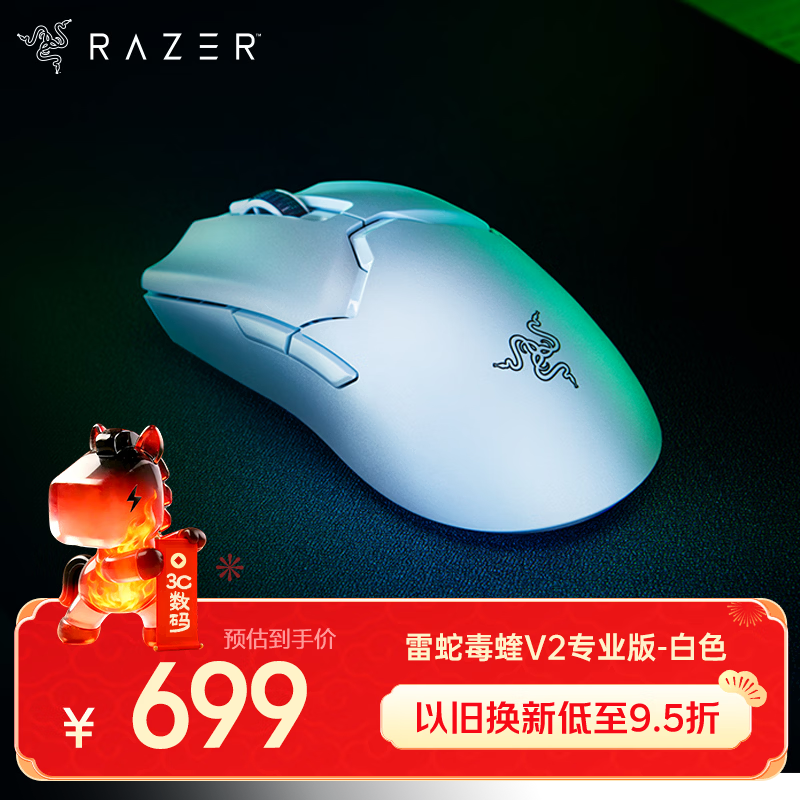 雷蛇(Razer)毒蝰V2pro专业版无线鼠标 电竞游戏 轻量化 对称型 白色(附专用防滑贴+Type-C充电接口)