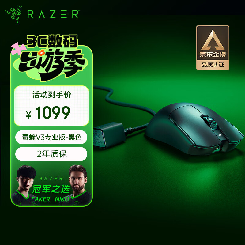 雷蛇(Razer)毒蝰V3pro专业版无线鼠标 8K 电竞游戏轻量化 cs2 三角洲打瓦 LOL Faker冠军同款推荐 无线电竞 黑