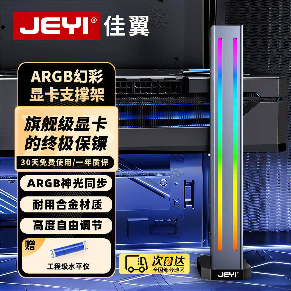 佳翼(JEYI)海景房专用显卡支架RGB 40/50系显卡铝合金千斤顶 立式磁吸ARGB神光同步 独立显卡托架