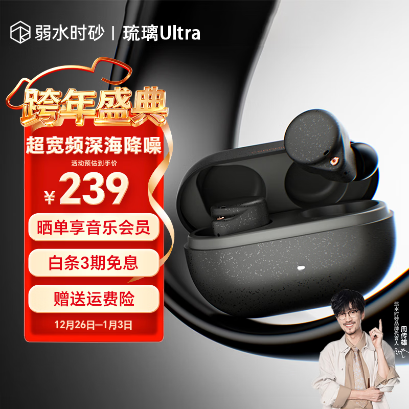 弱水时砂【重磅新品】琉璃Ultra无线蓝牙耳机琉璃X升级款入耳运动耳机抗风噪主动降噪HiFi音质超长续航学生 墨云黑|深海级降噪+旗舰HiFi音质