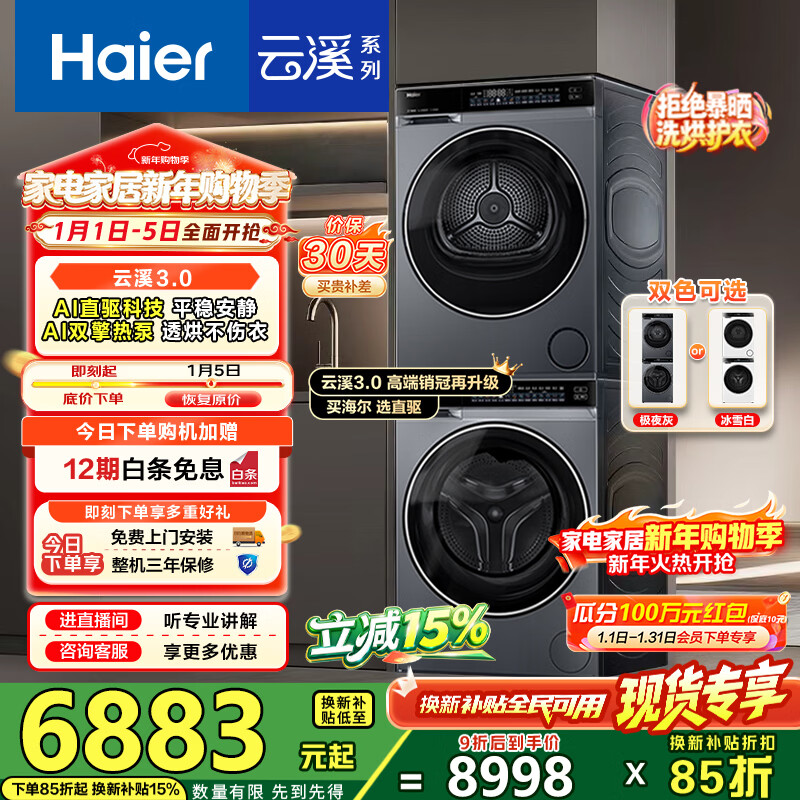 海尔(Haier)云溪3.0洗烘套装 10kg懒人滚筒洗衣机+AI双擎热泵烘干机AI直驱1.2洗净比家用白色 换新补贴 582w 【行业销冠】|云溪3.0/白 洗烘套装 10kg 典雅冰雪白