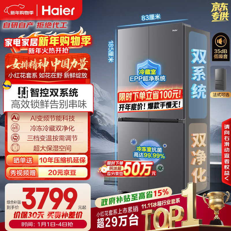 海尔(Haier)「小红花系列」548L十字门母婴冰箱双系统双净化0串味99.99%除菌变温空间BCD-548WGHTDC9FSU1国补