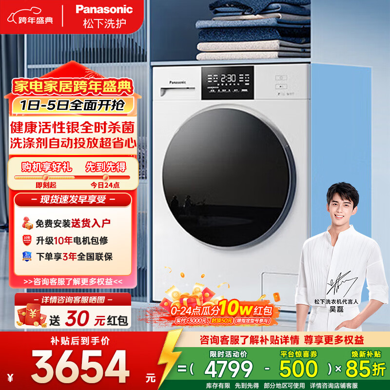 松下(Panasonic)滚筒洗衣机全自动洗烘一体 温水泡沫净内衣洗衣机带烘干 小白盒81KD4 超薄10公斤国家补贴20%家用 XQG100-81KD4
