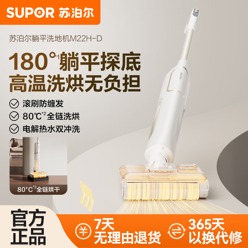 苏泊尔【升级高温洗烘】洗地机吸拖一体全自动家用拖地干湿两用吸尘器苏泊尔可躺平大功率自动清洗M22H-D 【热卖款】180°躺平 高温洗烘