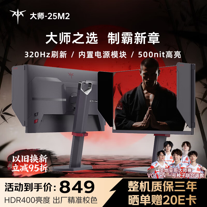 KTC 24.5英寸 320Hz电竞 Fast-IPS显示器 1ms响应 升降旋转电竞职业FPS游戏 电脑显示屏 大师25M2