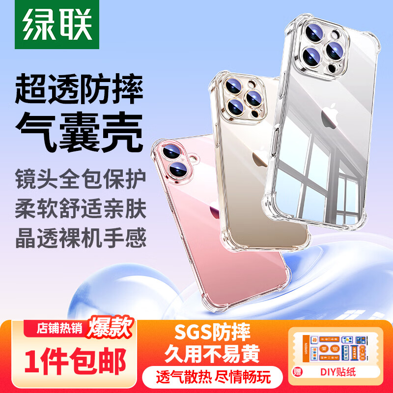 绿联(UGREEN)适用iPhone15/16promax/16e手机壳苹果16MagSafe磁吸充电防摔壳套镜头全包新春蛇年壳 晶透气囊壳【TPU软壳+镜头全包】 16 Pro Max