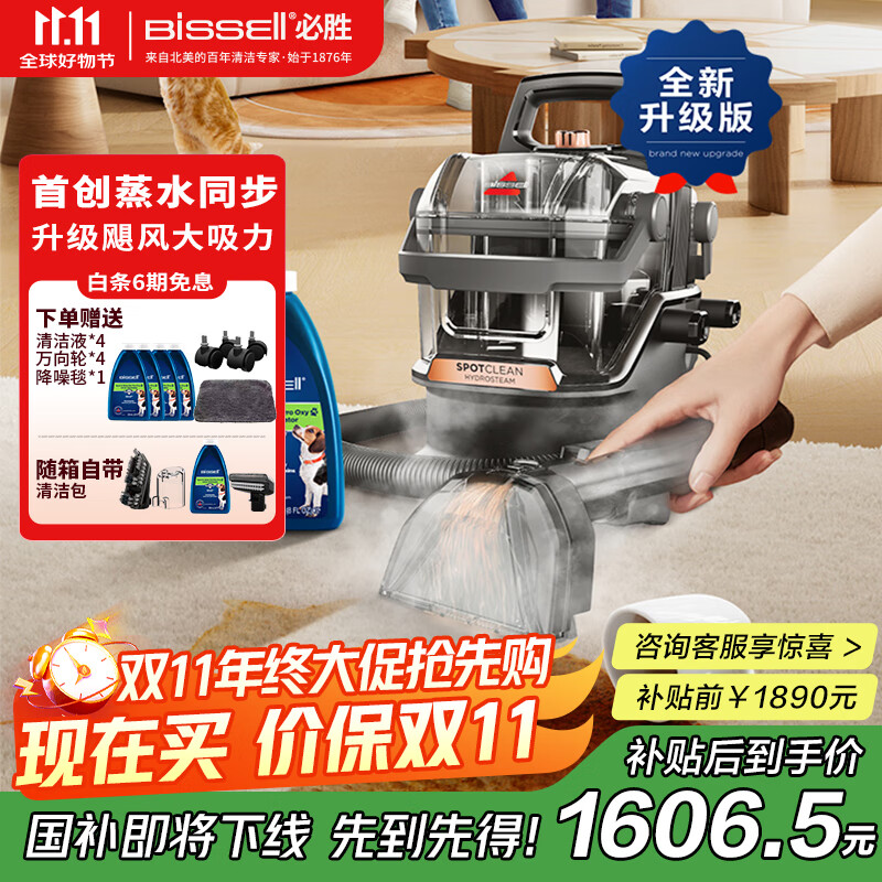 必胜(BISSELL)小蒸龙升级版 高温蒸汽清洁机 布艺沙发多功能清洗机洗窗帘床垫地毯清洗机器吸尘器蒸汽洗吸一体机 【升级版】多功能清洗小蒸龙-3700Z
