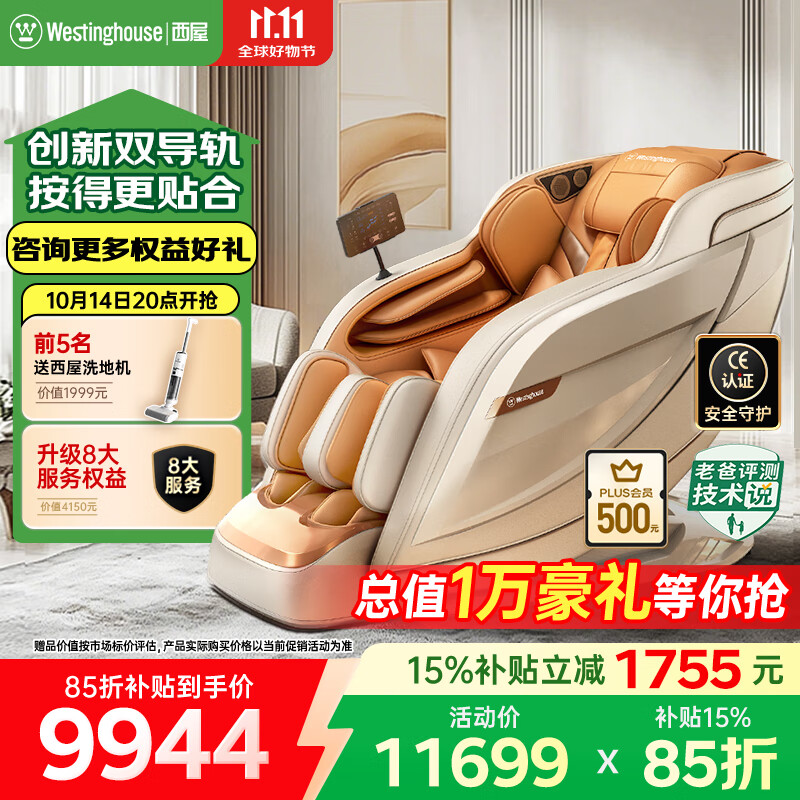 西屋(Westinghouse)【CE认证】 S570家用智能电动按摩椅全身按摩器肩颈腰背揉捏全自动太空舱沙发2025十大按摩椅品牌 霞光橙【温馨浪漫,浅色家居首选】