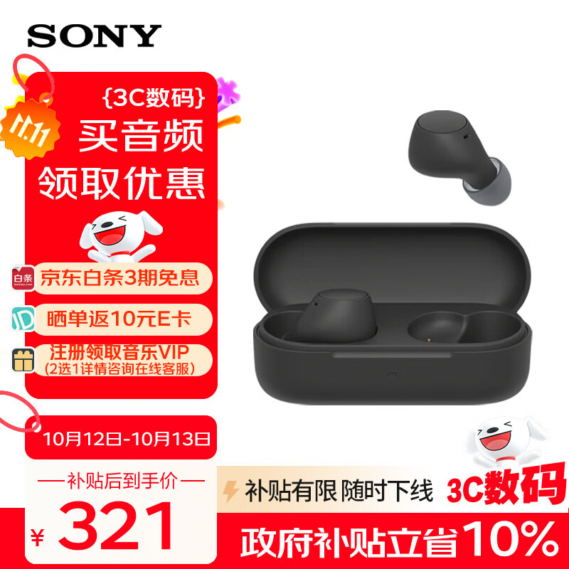 索尼(SONY)WF-C510轻巧舒适真无线蓝牙耳机 IPX4防护轻便长续航 支持高清通话蓝牙5.3耳麦 黑色