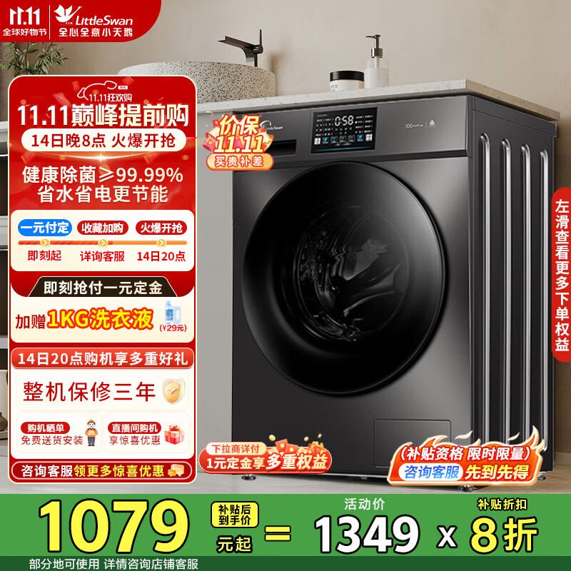 小天鹅(LittleSwan)10kg滚筒洗衣机全自动 以旧换新家电国家补贴20% 家用一级能效大容量变频 快洗1:1高洗净比洗衣机 10公斤V23PRO单洗滚筒