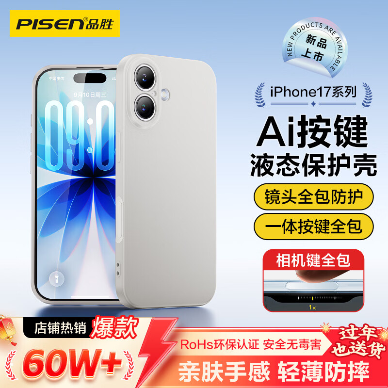 品胜【相机按键全包】适用iPhone17手机壳苹果17保护套亲肤柔性液态男女款超薄全包软壳保护套灰色