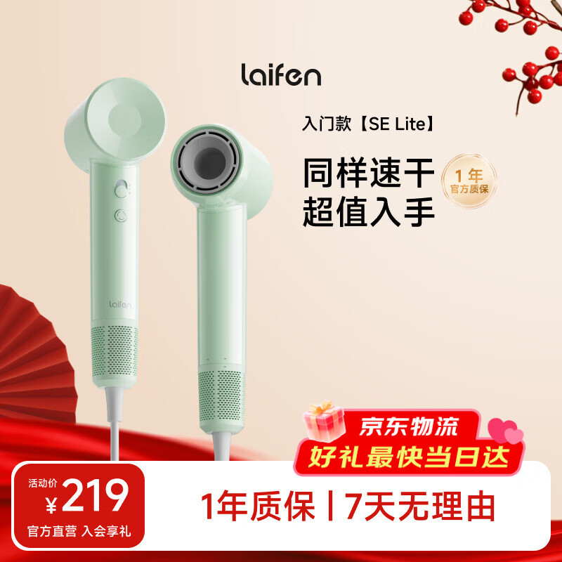 徕芬Laifen SE Lite 家用入门款高速吹风机 莱芬大风力速干低噪学生宿舍便携风筒 礼物推荐 国家补贴 SE lite绿色