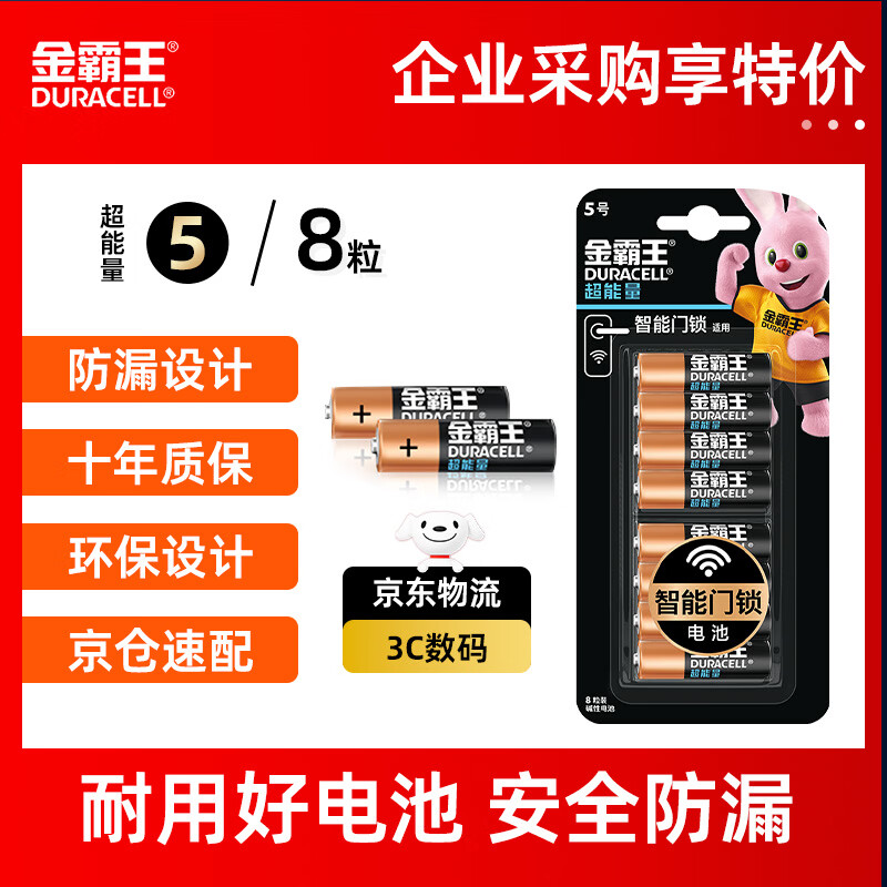 金霸王(Duracell)超能量智能门锁电池 5号电池8节装 适用于小米鹿客凯迪仕TCL德施曼等电子门锁指纹锁