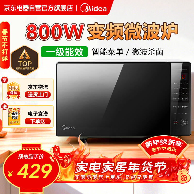 美的(Midea)家用一级变频微波炉800W平板速热 一键智能菜单 微波杀菌 易清洁内胆 隐藏式拉手 PM20M3