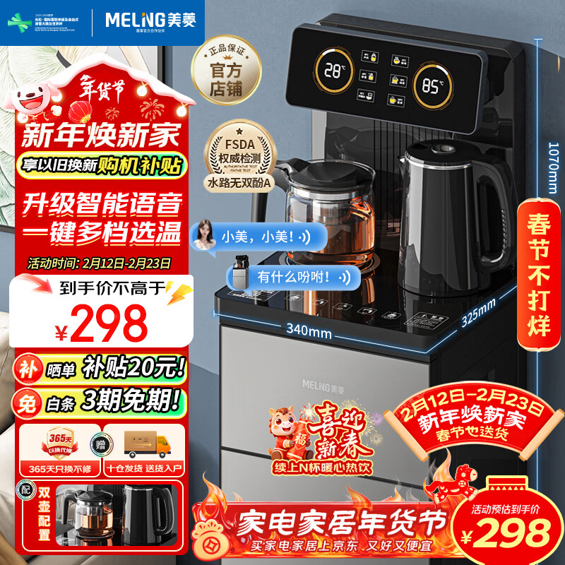 美菱(MeiLing)智能语音遥控升级语音款茶吧机家用饮水机下置水桶一键选温自主上水立式泡茶机MY-DA3919pro
