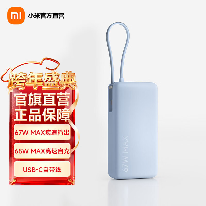 小米(MI)【3C认证】自带线充电宝 20000 67W 可上飞机/火车 可充手机平板笔记本耳机 iPhone安卓可用 浅蓝色