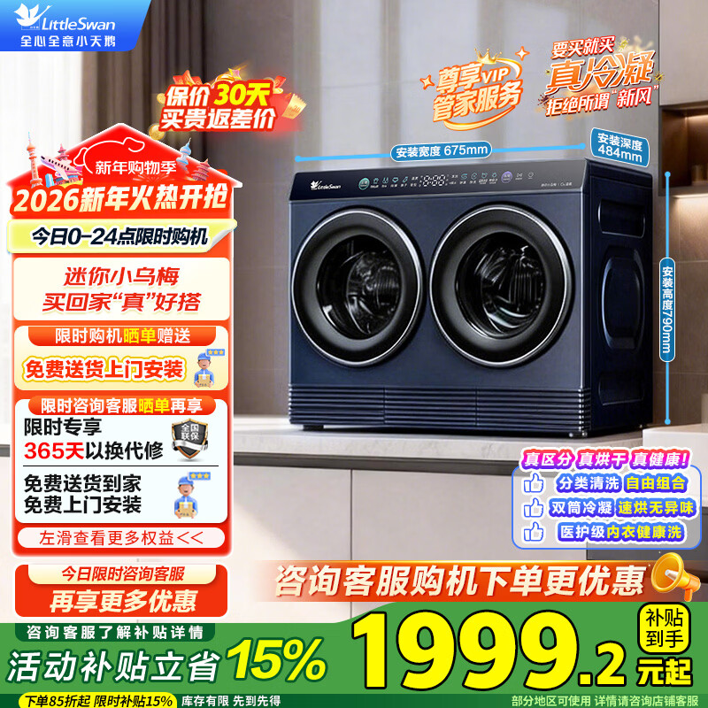 小天鹅(LittleSwan)双筒分区洗 【迷你小乌梅】可组懒人三筒洗衣机 叠加外挂洗烘一体 内衣洗衣机一级能效国家补贴20% TNDD20-08AIDE