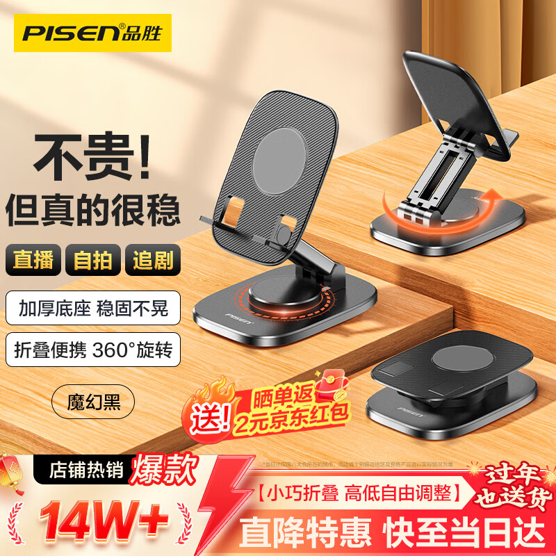 品胜 手机支架桌面 直播网课便携可折叠旋转 床头懒人支架 刷剧看视频手机平板通用支撑架 黑色