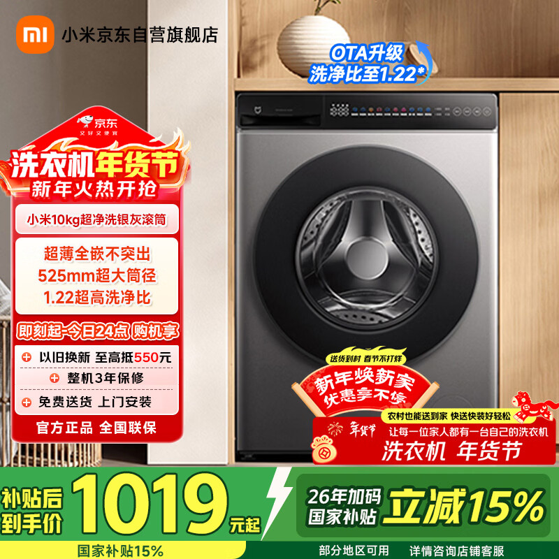 米家小米滚筒洗衣机全自动10公斤超净洗羊毛洗家用超薄大筒径一级能效国家补贴XQG100MJ107