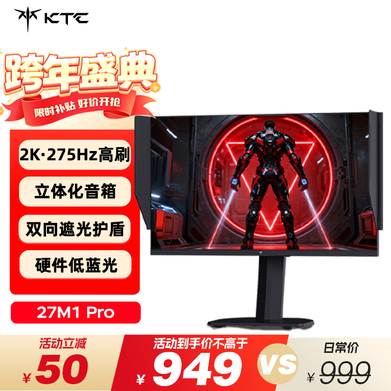 KTC 27英寸2K高清275Hz原生240Hz 音箱 HDR400 硬件护眼 升降旋转 三角洲游戏显示器 大师27M1 Pro