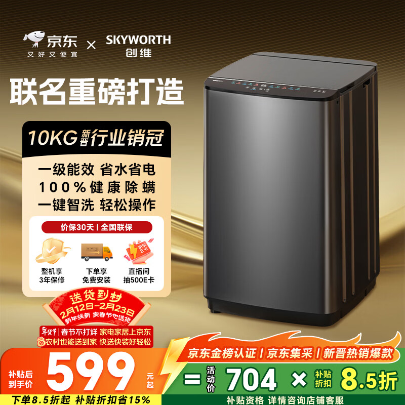 创维波轮10公斤洗衣机全自动京东自营 宿舍租房 一级能效省水电 以旧换新 健康除螨 国家补贴T100X