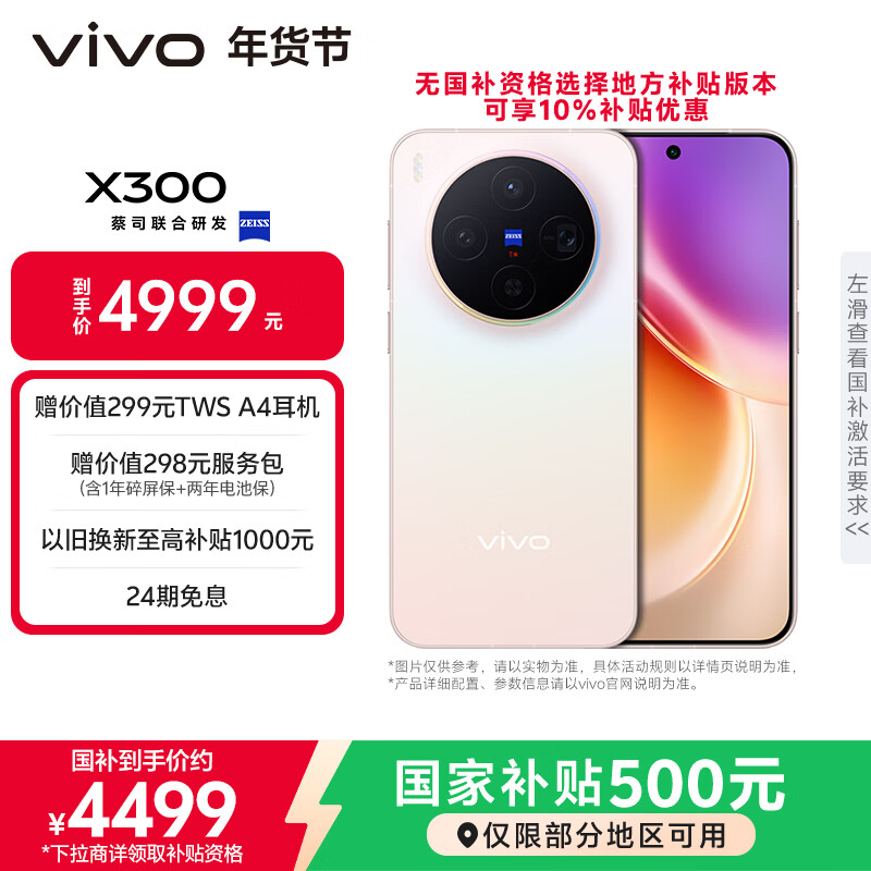 vivo X300 12GB+512GB 幸运彩 蔡司2亿超级主摄 蔡司APO超级长焦 5年持久流畅OriginOS 6 拍照 AI手机